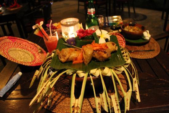 Lieu au calme malgré qu`il soit au bord de la route, le soir vous pouvez y choisir votre poisson frais grillé, crevettes etc. Vous pouvez également y déguster d`autres plats notamment locaux qui sont vraiment succulents mais ce qui fait aussi le petit plus de cet endroit est la façon dont vos plats sont servis : dans des sortes d`offrandes balinaises et dans des feuilles de bananiers, les photos parlent d`elle même. De plus les prix sont attractifs et le personnel est charmant.