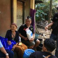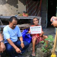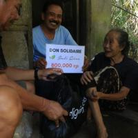 800, 000 rp + 1 sac de vêtements, brosse à dents, dentrifrice, savon + 5 kilos de riz