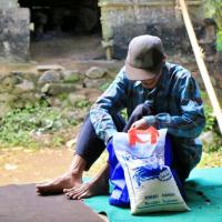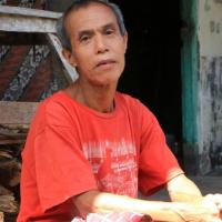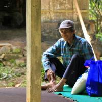 Wayan Aget a plus de 80 ans, pour info beaucoup de personnes âgées en Indonésie ne connaissent pas leur âge. Il ne s'est jamais marié et n'a jamais eu d'enfant. Pour gagner un peu d'argent et pour s'occuper il aide à fabriquer des briques, il ne travaille pas non plus tous les jours à cause de son âge. Il gagne 30,000 Rp par journée de travail soit environ 2 euros.